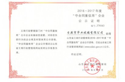 祝賀我公司獲得2016-2017年度省級(jí)“守合同重信用企業(yè)”。