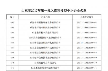 2018年1月24日,山東省科技廳發(fā)布公告,公布山東省2017年度第一批入庫科技型中小企業(yè)名單,我公司成功入選。